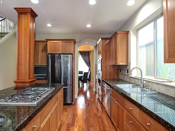 Lightly lived in Arbor Pointe gem! Backs to green space! Views, privacy, hardwood floors, high-ceilings, curved archways, main floor bedroom & full bathroom, loft, bonus & more! Gorgeous kitchen with walk-in & butler's pantry, gas cooktop, SS appliances, granite, island & eating area with access to low-maintenance backyard. Large family room with gas FP & wall of windows. Formal DR. Luxe owner's suite with soaking tub & walk-in closet. HOA dues cover front yard maintenance/Internet. A must see!