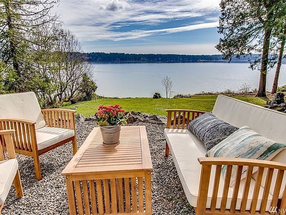 Coastal Craftsman on private acre w/incredible view & easy access beachfront. Open floor plan w/soaring ceilings & window package to take advantage of unbeatable vista. Radiant floors upstairs & down for high-efficiency heating. Master bedroom w/built-ins, walk-in closet & master bath. Heated garage perfect for hobbies or additional living space. Desirable Sandy Hook offers private waterfront living moments away from downtown Poulsbo & BI, ferry. 5-bed septic and large lot perfect for adding on.