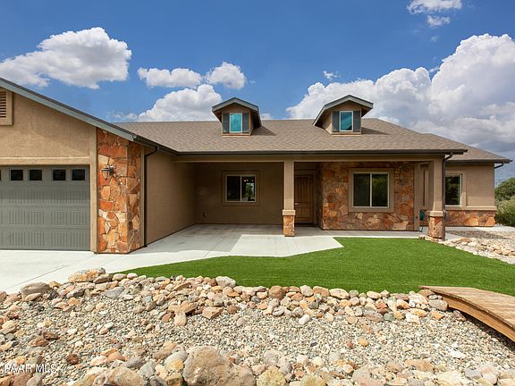 Beautiful 4br move-in ready home situated on almost 3 peaceful and very private acres with spectacular views of Mingus Mountain and surrounded by almost zero maintenance native landscaping. The lot is completely fenced in, with large shed, barn and separate horse areas. Bring your horse(s) and enjoy the peace this property offers. Huge kitchen with walk-in pantry and large island invite you to entertain your friends and family. Covered outside patios in front and back and side offer privacy and incredible views of the mountains and valley. Artificial grass, a fountain and bridge over the rock creek give you the peace that you have been craving. Gather around the outdoor fire pit and watch the shooting stars and Milky Way at night in the clear skies overhead.