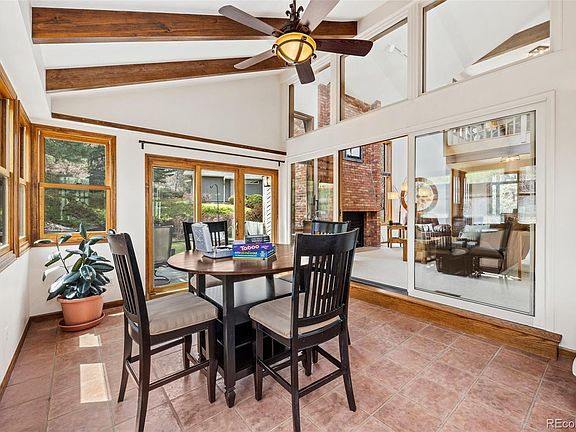 Welcome to 14556 W 3rd Avenue, a remarkable 3-bedroom, 4-bathroom townhome that combines unique style, comfort, and convenience in the desirable Sixth Avenue West neighborhood in Golden. This architectural gem is distinguished by its brick exterior, incredible woodwork, and soaring vaulted ceilings. Step inside to discover an inviting living room awash in natural light from the floor-to-ceiling windows and complemented by a warm brick fireplace. The sunny office, adorned with wood paneling, is an ideal space for work or relaxation. The sunroom with gorgeous beamed ceilings is conveniently located just off the living room and offers a serene retreat to enjoy Colorado's year-round weather. The formal dining room, overlooking the grassy lawn, creates an elegant atmosphere for gatherings. The well-appointed kitchen boasts granite countertops with ample space and an additional nook for casual meals. Retire to the spacious primary bedroom on the upper level, complete with vaulted ceilings and french doors leading to your private northwest-facing balcony. The luxury ensuite bathroom features modern updates and skylights for an airy ambiance. The additional upper-level bedroom is generously sized, offering access to its own full bath. The cozy loft overlooks the living room and offers an additional space to retreat after a long day. The versatile basement provides an additional guest room with access to its own updated bath. The remaining space is perfect for recreation, ample storage, or a secluded workshop. Parking is a breeze with a 2-car attached garage and plenty of space in the long driveway. The townhome's exceptional location is within walking distance to many vibrant parks, schools, and hiking trails near Green Mountain. Enjoy shopping and dining at the Colorado Mills Shopping Center, with easy access to 6th Avenue and I70. Embrace the perfect blend of elegance, functionality, and location in this stunning Golden townhome.