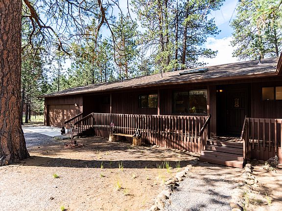 Charming and spacious, well maintained, single level, 1972 sqft home on .98 Pine treed acre in the quiet forested Firewise community of Crossroads. Enjoy the light and bright, large eat-in kitchen. The pellet stove in the roomy cabin like living area keeps you cozy! The bedrooms are spacious with big closets. Built-in storage is found throughout the home. Oversized attached 2 car garage. Nice covered front porch and a partially covered rear deck. Ample room to build a shop. Newer drain field (2018), Roof, HVAC & Carpet (2017), Exterior paint (2020) Live just minutes from downtown Sisters! This is a great place to live and play!
