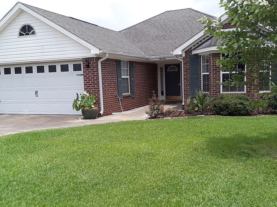 Beautifully landscaped 3 bedroom 2 bath home. Master bath has 2 vanities , 2 closets and spa tub. Large master bedrm. Screened porch and storage bldg with shade of liveoak . 11 ft ceiling in living area making area spacious and inviting.