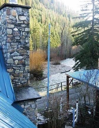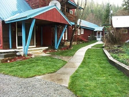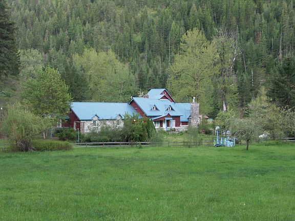 Wolf Lodge Estate: Unique 4BR home at confluence of 2 streams, end of road privacy, gated, 20 minutes to CDA. Located at gateway into vast US Forest Service & Horizon Equestrian Park. Pasture, 50+/tree orchard, elk, deer, moose outside your door. Extensive natural stonework inside & out. RV Parking pad