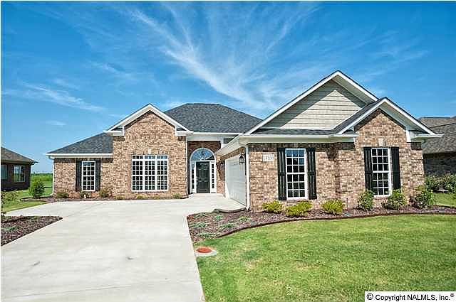 TVA Energy Right Built Full brick home. Great room w/ vaulted ceiling and gas log fireplace,wood floors in foyer, dining rm, great rm, kitchen, breakfast & hallways,18" tile in baths & laundry rm, Stainless appliances. Double garage with opener. Full sod yard & custom landscaping. Sprinkler system, Brushed Nickel Fixtures. Wood shutters, security system, granite counters in Kit. & MB, Backsplash in MB & Kit,Cellulose Insulation,Large Covered Patio, Buyer to choose appliance package.