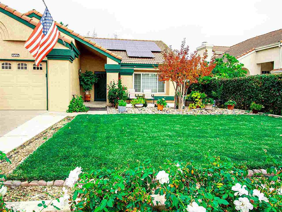 Lovely single story home with several amenities. Owned solar installed within the last three years, newer high efficiency A/C & heater, newly upgraded granite kitchen with raised counter heights, bamboo floors in cozy family room with wood burning fireplace, formal dining room, formal living room, master suite with sunken jet tub and backyard access to deck with hot tub, fresh paint outside, RV & side parking with small locking storage building on same side, RING Security camera/doorbell, metal framed security doors on front and side of house. Beautifully landscaped front yard, dog run on side yard, fenced garden area in backyard. No HOA or special assessments.