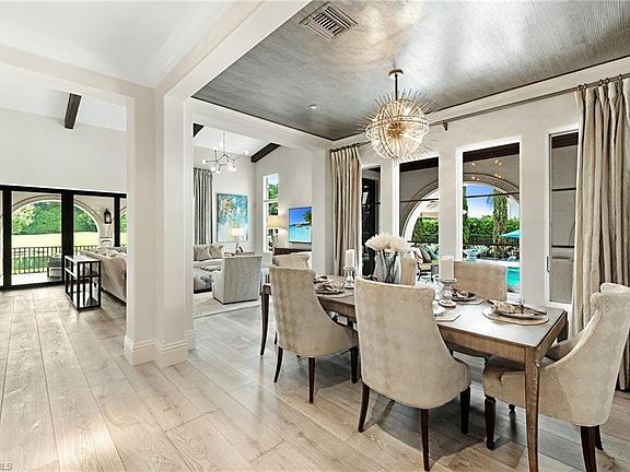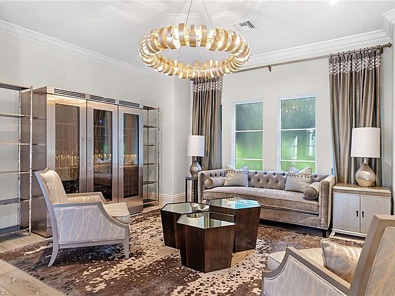 This gorgeous custom home is located in the exclusive Mirada neighborhood of Estuary at Grey Oaks. Featuring nearly 5,000 square feet of living space, this immaculate residence showcases high-end finishes and exquisite quality. A grand two-story foyer, with elevator, four full bedrooms with en-suite bathrooms, study, a chef's kitchen, and an expansive outdoor living area with resort-style pool, spa, waterfall and fire features are just a few of the inviting features this home has to offer. The outdoor living area consist of a gas fire pit, outdoor kitchen and motorized screens overlooking magnificent lake and golf course views. No detail was overlooked with impact doors and windows, climate controlled 4 car garage. With the option of applying for Golf or Social membership at Grey Oaks Country Club you will have 54 holes of golf, newly renovated wellness center, lagoon style pool, tennis, pickle ball, bocce, restaurants, spa, and extensive amenities at your fingertips. All just minutes from downtown Naples world-class shopping fine dining and white sand beaches.