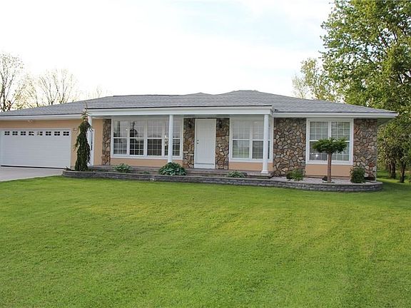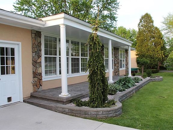Welcome to a wonderful, fully updated, spacious ranch. Settled on half an acre country lot in Churchville-Chili school district. This 4 Bd 2 full bath offers, traditional cherry kitchen with an island and granite counter tops including all the appliances. Huge 20x23 living room with cathedral ceilings. Gleaming hardwood floors throughout the house with porcelain tiles in the kitchen and bathrooms. Formal dinning room leads to a stamped concrete patio and pool for your summer enjoyment. Partially finished basement with entertainment room and office/bed. Newer furnace and tank. Full walk-out basement. Updated roof, windows and doors. 15+ car concrete driveway with RV/Boat pad on the side. Professionally landscaped and maintained front yard. Conveniently located by highway and shopping plazas of your choice.