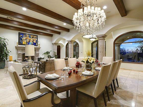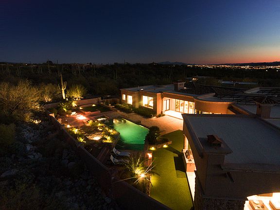 Owner/Agent. Masterful design & luxury are embodied in this distinctive 7150 sqft, 4 BR, 7 BA, 2.66ac. villa. This one of a kind home, created by Christian Dixon is nestled deep in the foothills w/stunning city & unobstructed mountain views. Every detail carefully selected & quality crafted. A divine master suite presents massive windows, fireplace, opulent en suite bath & exercise room. Automatic sliding doors in the living/dining area showcase awe inspiring views of Pima Canyon and the spa style pool with relaxing water features. Other highlights include natural stone floors, hand carved cantera and wood accents throughout, whole home automation, high tech security system, whole home water filtration and softener, fully appointed media and rec rooms, study w/en suite & Murphy bed, top of the line chef's kitchen and the list goes on! Green features include solar system, electric car charging station and Rasta Block for superior insulation.