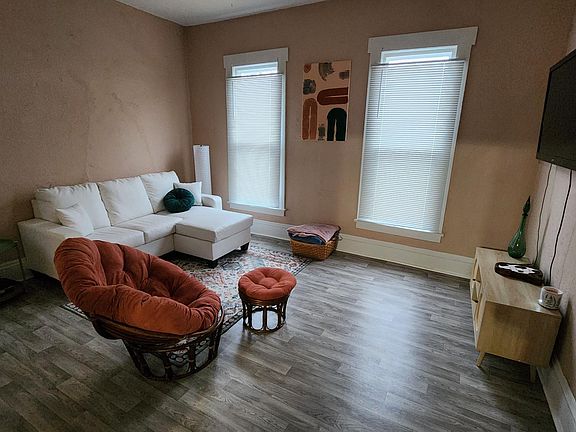 Welcome to your new home at this quiet 1-bedroom, 1-bath 3-plex. Enjoy the luxury of new flooring in the living room and bedroom, complemented by a covered porch. The unit is equipped with a stove, refrigerator, heat and a/c for your comfort. No washer or dryer hookups are available, laundromat is conveniently nearby. This unit is move-in ready on August 1st. Tenants are responsible for electric and gas, while the landlord takes care of the water and yard maintenance. This residence is located close to downtown, offering easy access to amenities and entertainment. Please note that no pets are allowed, and a 12-month lease is required. To schedule a viewing, ensure you submit a Zillow application beforehand, making your move-in process seamless and efficient. 12-month lease terms. Owner pays for water. Tenant is responsible for gas and electric. No smoking. No pets. No washer and dryer hookup.