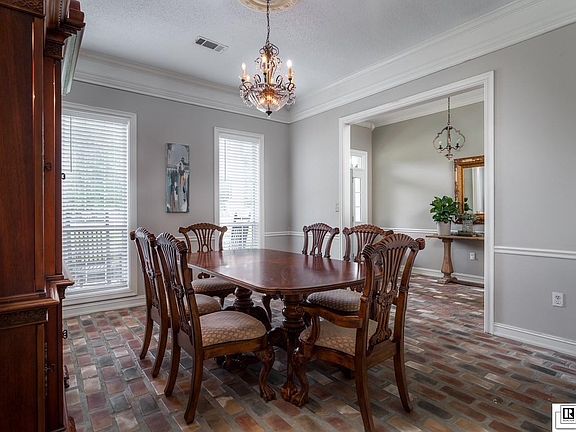 Southern charm greets you when you pull up to this classic 4 bed/2.5 bath home with a sprawling front porch and circle drive. Enjoy preparing meals for your family and friends while they relax in the breakfast area and keeping room with painted brick fireplace right off of the kitchen. Savor family meal time around the table in the dining room or kick back around the fireplace in the living room watching tv or playing games. The split floor plan provides additional privacy for the master suite. Relax in the backyard overlooking the Frenchman's Bend golf course and access the course from the golf cart path right off of the driveway. The laundry room offers additional storage space as well as a pantry closet off of the keeping room. Additional home features include updated 4 burner gas cooktop, new double oven, freshly painted cabinetry, new bath faucets, and wood blinds. Outdoor amenities include gutters, outdoor flood lights, circle drive, mature landscaping, golf course access, and a 2 car garage with an extra garage bay for lawn equipment, golf cart or storage.