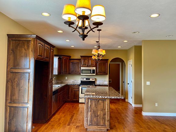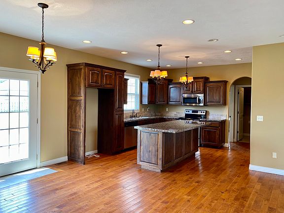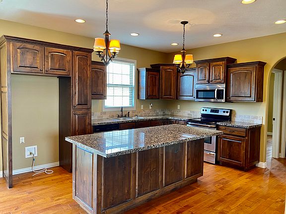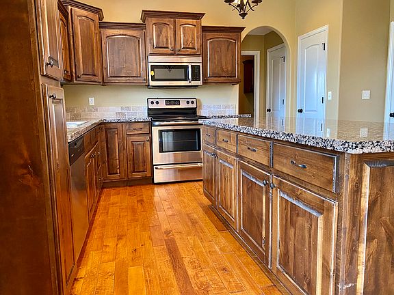 Beautiful 4 bed 2 bath home with 2-car attached garage near Whispering Oaks golf course. Open floor plan, gorgeous wood floors, tile, walk-in shower and stone fireplace. Kitchen has granite tops with, island/bar and stainless steel stove and microwave. Master features 4 piece bathroom, jetted tub, double vanity and large closet. Arched entries in living room and dining/kitchen combo opens up to back deck.