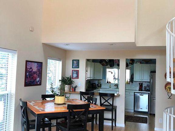 Beautiful open, vaulted floor plan with 25 foot ceilings and fantastic natural light. Remodeled end unit. 2625 sq. ft. Main floor master with dual sinks and closets. Improvements: double pane windows, hardwood flooring, remodeled bathrooms, gas range and fireplace, stainless appliances, hot tub, a/c, drapes & blinds, interior paint, granite counter tops and fenced private patio. Top rated Schools, Incredible views.