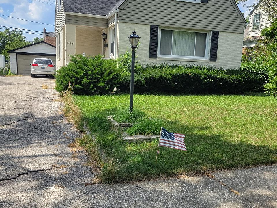 Open first floor levelTwo car detached garageAsphalt drivewayCentral air conditioningPrivate yardUpdated kitchenNew laminated wood-look floors