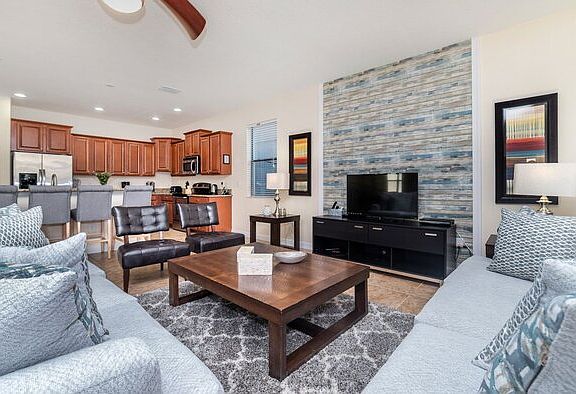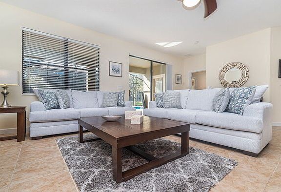 This property is a corporate rental. Please note that the monthly rental price for this property is dynamic and subject to seasonal adjustments. For an accurate quote, provide us with your intended move-in and move-out dates. ChampionsGate Resort Vacation Pool Home - includes resort clubhouse amenity access! Our 4 bedroom, 3 bathroom, private vacation pool home is a great option for families wanting a home base to enjoy the best of all that Central Florida has to offer. * ChampionsGate Resort Private Pool Home Sleeps up to 8 * 4 bedrooms / 3 bathrooms * Private Pool - West Facing * Game Room including Air Hockey and Foosball * ChampionsGate Resort Gated Community * 10 miles to Disney World property * Dog-Friendly +$ * Fully equipped Kitchen with seating for 8 at the dining table, and 4 spots at the breakfast counter BEDROOMS (All Ground Floor) - Master Suite 1 - One King Bed / Attached Bathroom - Bedroom 2 - One King Bed / Shared Bathroom - Bedroom 3 - Two Twin Beds / Shared Bathroom - Bedroom 4 - Two Twin Beds / Shared Bathroom A pack\'n\'play are available for use as well. Dog-Friendly Home (+$) *This is a dog-friendly home *There is an additional $150 plus tax nonrefundable fee * There is a two-dog limit * Dog(s) must be disclosed and the additional fee must be paid prior to arrival. Pool & Spa Charges and Information: There is an additional optional charge of $30 per day plus tax to heat the pool. Please note that our pools are serviced on a weekly basis. Resort Parking Rules: The resort allows a maximum of 5 cars (or 3 large passenger vans). Do not block the sidewalk or park on the street or the resort will fine you. For visitors, there is a maximum of 10 cars per property. ChampionsGate Resort Amenity Access Included with Rental: We are pleased to offer two clubhouses at Championsgate Resort- this property is located closest to the Oasis Clubhouse It is a 2-minute drive or 9-minute walk to the Oasis clubhouse from this property address. * Huge resort-style pool with pool-side cabanas * Exciting water slide * Relaxing windy lazy river * Interactive children\'s splash park * State-of-the-art fitness center * Movie theatre * The Grille restaurant * full-service restaurant * 18-hole challenging golf course * Pool-side tiki bar * Playground * Volleyball courts Distances from Resort to Shopping & Attractions: * Walt Disney World - 10 miles * Universal Studios - 21 miles * SeaWorld - 18 miles * Orlando Airport - 30 miles * Atlantic Coast Beaches - 78+ miles * Gulf Coast Beaches - 84+ miles * Publix Supermarket - 2 miles * Walmart - 7 miles * Dining - 2 miles Why Choose this Rental? * Professionally managed to serve all your needs * Management company has over 26 years of experience hosting well over 200,000 families * Go straight to your rental with online email check-in * 24/7 on-call maintenance * No Resort Fees * Free On-Site Parking * Smoke-free and pet-free for your comfort * Towels and linens are provided * Complimentary WiFi * Additional Rental items Available (e.g., 3 & 4 burner BBQs, cribs, pack-n-plays, strollers, high chairs, etc.) Our starter welcome packet supplies: * 2 rolls toilet paper per bathroom * 2 round hotel-size bar soap per bathroom * 1 hotel-size shampoo/conditioner per full bathroom * 1 roll paper towel * 1 packet dishwasher detergent * 2 trash bags size-13-gallon * 1 small box laundry detergent (enough for one load) * Garbage can liners in each bedroom/bathroom small garbage cans Any supplies beyond this are up to the guest to replenish, we do not restock these items. No salt/pepper or cleaning supplies are stocked due to safety issues. This is an industry-standard practice. FOR GUESTS WHO BOOK 30 NIGHTS OR LONGER STAYS: (this does not apply if you are staying less than 30 nights) We will collect a $1,500 deposit. Balance is due 60 days prior to arrival If canceled 90 days or more before arrival, we keep with us $250.00. $1,250.00 will be refunded. If canceled between 61 and 89 days prior to arrival, we keep with us the $1,500.00 deposit. No cancellation or modification 60 days or less prior to arrival. Contact us to schedule a showing.