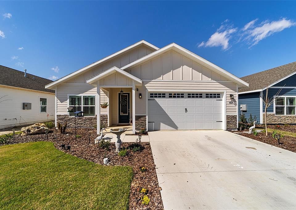 Seller Motivated!! Built in 2022, this Weseman Builder's Bree model in Grand Oaks is 1806 square feet with three bedrooms and two bathrooms. The home has over $16,000 in additional updates the builder does not include! 100% financing options are available along with Conventional, VA, and FHA. The seller spared no expense in creating a charming, fenced outdoor living space complete with a 10 ft 3-way slider to an extended covered back porch and pergola. The home has Hardiboard siding with decorative stone, 30-yea r architectural shingles, lush landscaping, and an irrigation system. There is luxury vinyl flooring in the main living areas, tile in the bathrooms, and 9 ft ceilings with a tray in both the master and living room. The kitchen features stainless steel appliances with a gas range, wood shaker-style soft-close cabinets, and quartz countertops. Energy-efficient features include low e double-paned vinyl windows with custom plantation shutters throughout, R31 insulation and a heat barrier in the attic, and R13 insulation in the walls. Both Ring cameras and the ring doorbell are included. The community offers a pool with a pavilion and a playground. Close to the University of Florida, North Florida Hospital, UF Health, Celebration Point, I-75, and Downtown Gainesville.