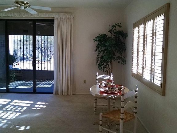 Desert Hills area is one of Green Valley's most desirable locations. This light-filled end unit offers a peek-a-boo mountain view to the east and open space off the back patio. Newly painted and new carpet on the way, you will enjoy this move-in ready home. There is even a quaint, white cast-iron gas fireplace in the living room for those chilly mornings. The securely enclosed back patio offers extra living space to take in the wildlife and mountains to the north. The efficient and clean kitchen, and the tiled walk-in shower is a plus, making this your perfect full-time, or lock-and-leave winter home. There is covered parking right out your front door and extra guest parking nearby. And right in your neighborhood, you'll find the Desert Hills Golf Course, Rec Center and much more.