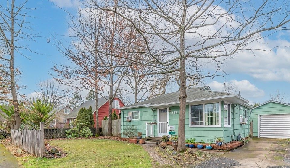 This quaint home is located in the heart of South Eugene. 2 Bd, 1 Ba with hardwood floors, skylight, and in a quiet neighborhood. With a covered patio area for guests and a detached garage for storage and parking. Fully fenced backyard on a 0.18 acre lot! Conveniently located near shopping, restaurants, and main roads. Don't miss out on this home!