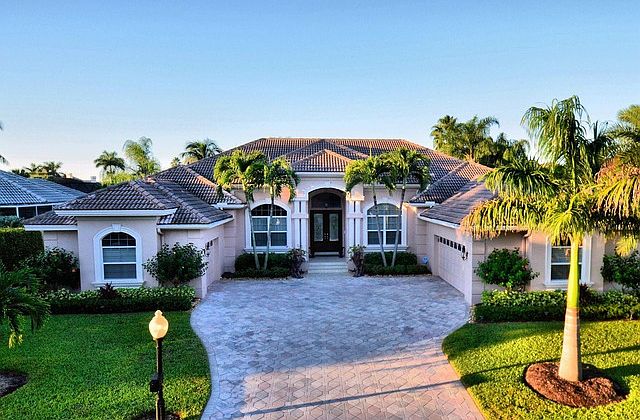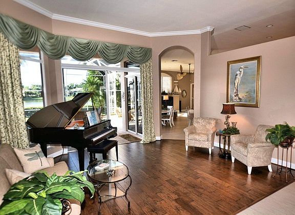 4 bedroom, 3.5 bath with 2 Master Suites, Den, Large 3 car Garage, Spectacular South facing private lake view for lots of winter sun, Beautiful Re-Model, Most everything is newer! Granite kitchen counters, Stainless appliances, Wine cooler, wine rack and china hutch, Fresh exterior & interior Faux paint, Wood flooring, Crown molding, Plantation Shutters & Custom drapery, multi-level lanai with new covered Outdoor Kitchen featuring Granite counters, Stainless appliances including Master Forge, Vollrath and Uline. Lanai Cage new screens 2012, new security system and whole house music system, new lighting, fans & custom Cornice Boards, New comfort height bath cabinetry & plumbing fixtures, Family room with flat screen TV, new washer & Dryer, Berber carpet, Master Bath has jetted tub & walk-in shower. Some furniture negotiable. Mechanical Service Agreement included with Sale. If desired seller will remove desk and install doors in bedroom IV.