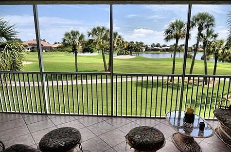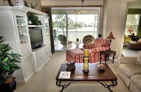 QUIET BEAUTY INSIDE AND OUT.Second floor end unit offers gorgeous golf course and lake views and an equally fabulous interior.It's nestled in the Grande Cay community, deep inside prestigious Gulf Harbour,well away from the noise of South Ft. Myers but still close to beaches, restaurants and shopping.Newly painted in rich but muted colors.Newly carpeted.3Br/2Ba plus unique gathering room adjacent to kitchen.The kitchen itself has solid surface countertops with upgraded cabinets.Upgraded fans and lighting throughout.Master has twin sinks,separate shower and soaking tub. 2 walk-in closets. Living room, master suite, gathering room and screened lanai all overlook golf course and lake. 2-car garage.Plenty of room for bikes and other storage.Right across from community pool, social center of this active people-friendly and pet-friendly community.Financially sound and well managed, Grande Cay just installed 50-year roofs on all units.Some amenities require membership, now priced lowest ever Brokered And Advertised By: John R Wood Island Real Estate Listing Agent: Michael Newes