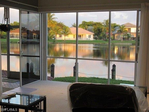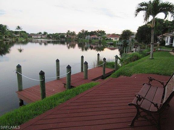 Located in the newest section of the Waters Edge community, this gorgeous lakefront home has 3 bedrooms, 2 baths, 2 screened lanais, island kitchen, 2 car garage, dock, deck, and more. Huge master bedroom suite with walk-in closets, a walk-in shower, a jacuzzi tub, and a sliding door that opens onto the lanai. Fantastic water views from the back deck and lanai, with morning sun and afternoon shade. Kitchen with granite counter tops, island, and stainless steel appliances. Second bath has another walk-in shower. High ceilings and crown molding throughout the house. Short walk to the private, gulf access marina and a 600' pier with beautiful sunset views and fishing. Gulf access via the community boat ramp. Heated community pool right across the street. Freshly painted, move in condition. Don't miss this one!