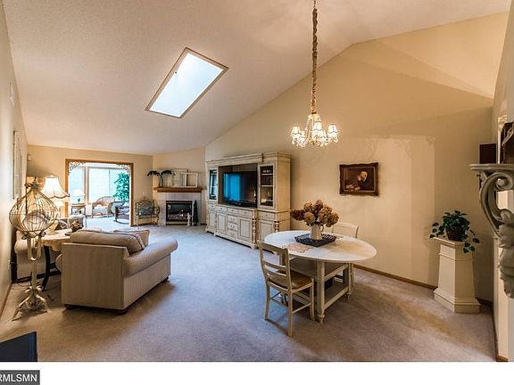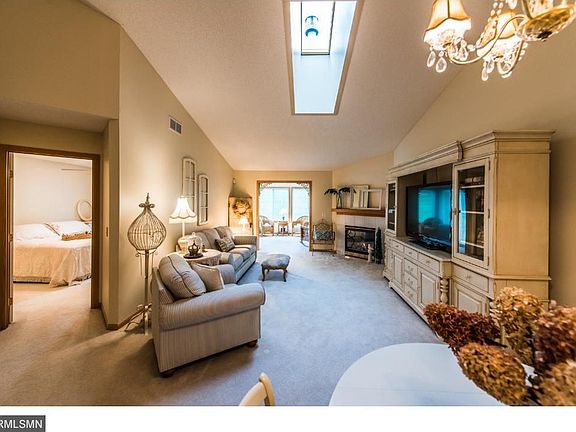 Move-in ready! Inside unit with Soaring Vaults with 2 skylights, fireplace, 2 full baths, Sunroom with sliding door to the patio with private green-space behind! Luxury master Bath with Separate Tub and Shower, walk-in closet! The garage is as neat and clean as they come! GREAT association is very hands-on and has very healthy reserves!