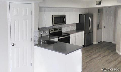 All of the work is done on this top floor unit. 2 bedrooms, (1 is a non conforming loft). New, paint ,floors, carpet, cabinets, quartz counter tops,new fixtures. New furnace, and ac, washer dryer WILL STAY. and all new stainless appliances New doors, trim, blinds..... Lots of new electric and plumbing... Just move in and everything is NEW, fresh, Clean. The bathroom has been redone and has a gray marble custom shower surround. Open floorplan and high ceilings make it seem bigger. Very modern feel The complex has a big pool just steps away from this unit. There is lots of parking near by.... You are within walking distance of shopping and transit.. Save your money. Cheaper than rent!!