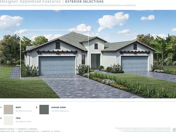 Well-designed contemporary living. The Sandhill's welcoming covered entry and open foyer flow into the spacious dining room and great room, with a view of the desirable covered lanai beyond. Overlooking the main living areas, the well-equipped kitchen is highlighted by a large center island with a breakfast bar, plenty of counter and cabinet space, and a generous walk-in pantry. The secluded primary bedroom suite is enhanced by an ample walk-in closet and spa-like primary bath with dual-sink vanity, luxe large glass-enclosed shower, dressing area, and private water closet. The secondary bedroom features a walk-in closet and access to a full hall bath. Additional highlights include a flex space with walk-in closet off the foyer and a centrally located laundry. Disclaimer: Photos are images only and should not be relied upon to confirm applicable features.