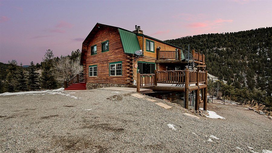 Cozy & charming log home nestled on a hilltop w/full day southern exposure & panoramic 180* views to Pikes Peak. Outdoor enthusiast will love fishing along 200ft of creek, shooting, hiking, camping, and more! Multiple decks offer tranquil places to enjoy the views, wildlife, & mountain life. Welcoming character & charm from the rope accents on log beams, moss rock fireplace, updated country vintage kitchen, lots of windows, bamboo hardwood floors, open floor plan & 1/2 bath. Kitchen offers an island w/granite counter, stainless steel counters, & built in cabinetry. Upstairs has hardwood floors, big bedroom, office, bath, & master suite. Big master suite includes private deck access w/hot tub, his/hers closets, & updated 5pc bath! Downstairs- big bedroom, storage room, & pet retreat. 2-car oz garage is finished w/220v, oz bay doors, & workshop. Private & convenient location w/gated entry; yet only minutes to HWY 285, Staunton Park, & 50 min to Denver on county maintained, plowed road.