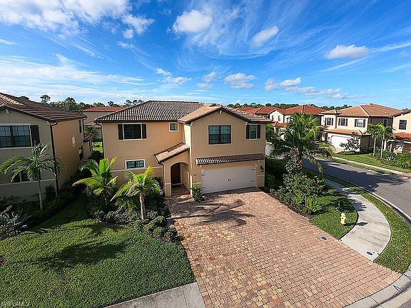 Perfect family home in brand new community with incredibly LOW HOA fees! Corner lot with southern exposure and beautiful landscaped lake views! This two story home comes with 4 bedrooms and loft area with the master bedroom on the main floor with lovely master bath separate walk in shower and spacious tub! Dream kitchen with trendy oversized island with gorgeous granite and cabinets! Oversized driveway and backyard with more than enough room to add a pool if desired. Tuscany Pointe is in a fabulous location, centrally located right off Vanderbilt Beach Rd. right down the road from all of Naples hottest beaches, shopping, restaurants and night life!