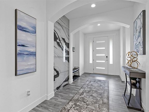 STUNNING 3 Bedroom, 2.5 Bath ranch home with luxurious finishes. Marble accent walls, Marble tiled showers, Engineered wood floors throughout, Kitchen holds all stainless steel appliances, custom quartz countertops, 16' Island, Double oven, gas stove/range, wine fridge, & walk-in pantry. incredible open shelving design adjacent to the kitchen. Gas fireplace nestled in the living room. Custom blinds throughout, Primary bedroom with 5-piece bath and walk-in closets. The laundry room is conveniently located next to the mudroom. Oversized 2 car garage. Amcrest security system, Wifi Sprinkler system controller, and, drip system to all planters. The furnace has an air scrubber, a high-efficiency power vent water heater, and a sump pump. The exceptional landscaping includes stamped/colored concrete patio, planters are staying. Gas stubbed to outside for gas grill. No neighbors behind you and NO HOA!!