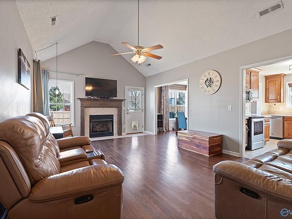 Move-in ready and full of charm! This wonderful full-brick home is perfectly located between Madison and Athens, just off Hwy 72 West. The spacious family room features a vaulted ceiling and a cozy fireplace—ideal for entertaining or relaxing. The kitchen is equipped with stainless steel appliances, a stylish tiled backsplash, and an open layout that flows into the breakfast and formal dining areas. The master suite boasts a trey ceiling, a luxurious glamour bath with double vanities, a separate shower, and a soaking tub. Enjoy outdoor living in the privacy-fenced backyard, complete with a shed that remains for extra storage or workspace. Don't miss this fantastic opportunity!