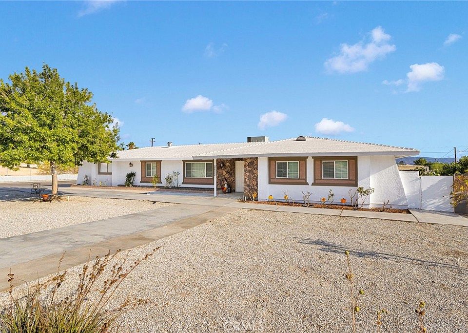 Fall in love with this beautifully updated property located in the sought-after Desert Knolls area. This home is truly turn-key with fresh interior and exterior paint, brand-new carpet, ceiling fans, and doors in all the bedrooms. The ceilings have been modernized with popcorn removal, retexturing, and fresh paint. The kitchen is sleek with lacquer frameless cabinets, providing a clean, modern look. The bathrooms feature granite counters, with a built-in vanity in the primary for added convenience. An additional 200+ sq. ft. bonus area off the primary bedroom (which is not included in the listed square footage) offers flexible space for a home office, gym, or lounge. The spacious garage has a 220v to charge electric vehicles. Two storage sheds in the backyard with plenty of additional land gives you endless options—park your toys, add an ADU, create a pool oasis, garden, or dog run. The property has extensive concrete for low-maintenance living and energy efficiency is a plus with solar already in place. Minutes away from schools, shopping and medical facilities. Schedule a viewing today!