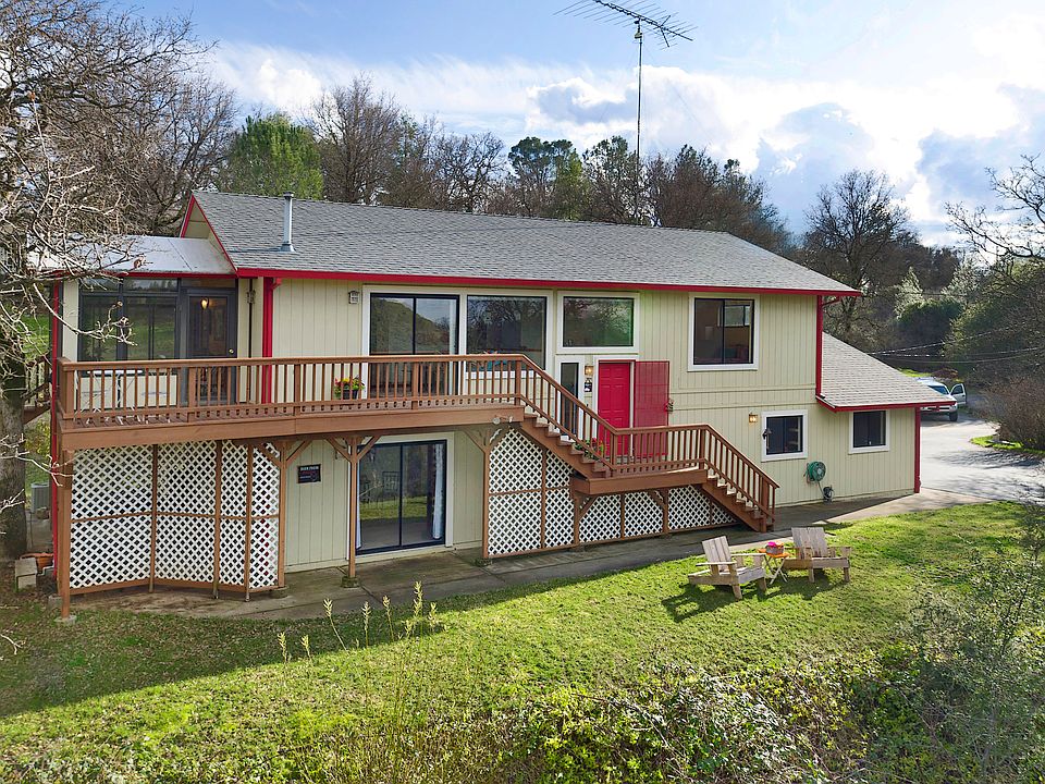 Lovely family home with great privacy and views off the back deck. Sellers just put on a NEW ROOF with permits. Split level floor plan with beautiful wood flooring throughout. Great room floor plan and wide galley kitchen. Garden window too! Great room floor plan with efficient pellet stove to warm those cool evenings. Large pretty sun room makes a great reading room or quiet meditation spot. The land is mildly sloped yet very usable in many places.......perfect for gardening on the sunny slope. Decks off the back of the house are a pleasant place to enjoy the local mountain view. N Ponderosa is a completely paved road. Parking pad has plenty of room for RV or other toys. Close to public transportation, schools and shopping. Just minutes from downtown Grass Valley. Please click on the link to see the visual tour, https://vimeo.com/206003286