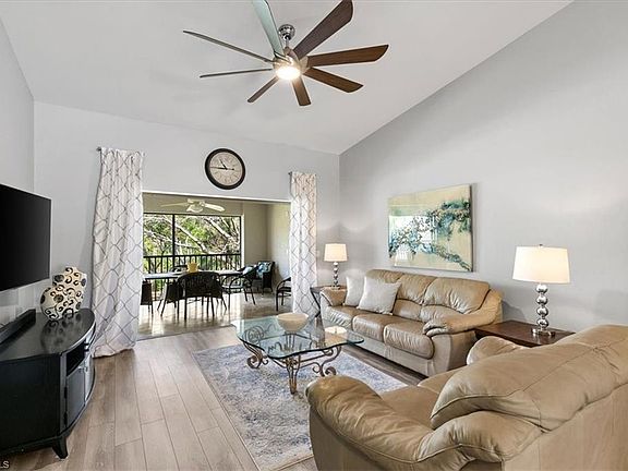 A perfect balance of comfort and luxury awaits in this beautifully turnkey furnished 2-bedroom, 2-bath condo nestled within Falling Waters North Preserve—a serene, boutique community ideally situated west of US-41. Perched on the second floor for enhanced privacy and soaring cathedral ceilings, this residence feels open, airy, and grand—bathed in natural light streaming through French doors and generous windows. The open-concept living and dining area flows seamlessly into a sleek eat-in kitchen, ideal for entertaining or quiet evenings at home. Pocketing sliders open to an expansive screened lanai that spans the full length of the condo. Here, tranquil woodland and fountain views create an idyllic backdrop for morning coffee or al fresco dining. The primary suite is a true retreat, offering private lanai access, a spacious walk-in closet, dual sinks, a vanity area, a deep soaking tub, and a glass-enclosed shower. The guest suite provides equal comfort and privacy, ensuring every visitor feels at home. Enjoy resort-style relaxation at the lagoon-shaped community pool, surrounded by lush tropical landscaping—a perfect spot to bask in the Florida sunshine. Located just minutes from Vanderbilt Beach, Mercato, and Coconut Point, this exceptional residence offers the coveted west-of-41 lifestyle: tranquil, elegant, and close to everything Naples has to offer. Live the Florida dream in style—where every day feels like a getaway.