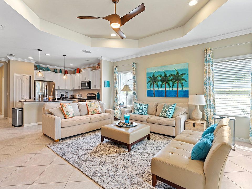 Gorgeous, attached villa offered FULLY FURNISHED with a Western Exposure for wonderful Sunset Lake views, built in 2014. This spacious 2 bedroom, 2 bath + den home is beautifully decorated in a colorful coastal contemporary style and has many upgraded features, including French doors and sleeper sofa in the den. Reflection Lakes of Naples is a gated community offering a heated community pool, children's pool, fitness center, bocce, billiards, library and many activities! Close to downtown Naples and Marco beaches and attractions! 90 day minimum seasonal rental.