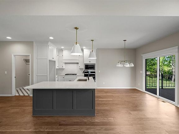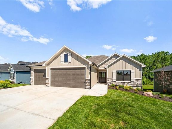 Villas Lot 3. Arista II by BC Residential Homes - Ready Now! Live in a maintenance provided Villa in a GOLF COURSE COMMUNITY!! This home is on a beautiful walkout lot that backs to trees!! Quality construction with many upgrades. The home is Energy Star 3.2 and has zoned HVAC, a 100k BTU 96% furnace variable speed, blown wall insulation of R-15, a 4 ton 16 SEER air conditioner variable speed as well as an IAQ humidistat to measure and control humidity. Bullnose corners, quartz in kitchen and all bathrooms, zero entry primary shower and back entrance, deep soaking tub in hall bath, stair lights and under cabinet lights on timers, and a covered composite deck are just a few of the features of this home. Just 10 minutes to the Legends shopping and entertainment and 30 minutes to the airport, Falcon Lakes is conveniently located on K-7 for easy highway access.