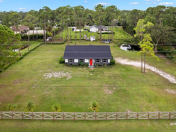 Welcome to this exquisite modern farmhouse, situated on a sprawling 1.19-acre lot. You won't have to lift a finger, as every detail has already been taken care of! With over $100,000 invested in renovations, this home seamlessly blends contemporary design with timeless farmhouse charm. The chef's kitchen boasts top-of-the-line stainless steel appliances, generous counter space, and custom cabinetry. The open-concept floor plan is bathed in natural light, featuring recessed lighting throughout. The master suite is a true sanctuary, complete with a private ensuite bathroom. This home also features impact windows and doors. Step outside onto your inviting patio, perfect for relaxation, or enjoy the warmth of the fire pit on cooler evenings. Shed for extra storage. The property comes with a brand new roof, A/C, and water heater. You'll also appreciate the new water softener and treatment system. Best of all, this home is located on a paved road and is free from the restrictions of an HOA, providing the convenience of nearby amenities and shops without the burden of high prices. Loxahatchee offers the perfect blend of tranquility and convenience. Just 25 minutes to downtown West Palm and the famous annual WPB Green Market. Enjoy the serenity of this area while being just minutes away from parks, equestrian trails, and open fields. With a plethora of outdoor activities available throughout the year, there's never a dull moment. EXCITING NEW RETAIL DEVELOPMENTS ARE ON THE HORIZON! Positioned at the southwest intersection of Seminole Pratt Whitney Road and Persimmon Boulevard. New retail stores include: Starbucks, 3Natives, Orange Theory and so much more. This is your golden opportunity to relish the full spectrum of Loxahatchee's offerings, both in the present and the promising future. Invest now and witness your potential flourish. Motivated seller, bring all reasonable offers.