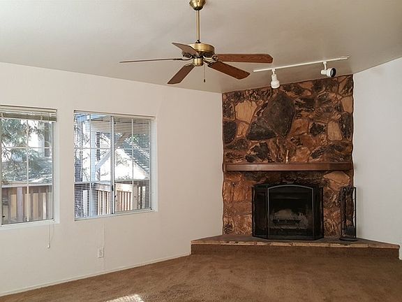 #690 WOW!! Don't miss out on this beautiful 2 Bedroom plus Den home. Featuring vaulted ceilings, sheetrock interior, spacious open floor plan with a wonderful kitchen that doesn't skimp on cabinet & counter space! It offers a free-standing gas stove & oven, overhead microwave range hood, dishwasher and ample refrigerator space plus a large breakfast counter for quick & easy meals or buffet style serving that opens out to a great dining room with overhead lighting & fan, bay windows plus a built-in hutch with etched glass doors! The adjoining living room also offers bay windows, overhead light & fan and an attractive fireplace! Check out the Master Suite with a large walk-in closet, vaulted ceilings, overhead light & fan and private bathroom with a big walk-in shower, extra linen storage and plenty of space. The guest bath & bedroom are conveniently located next to each other plus a large den sits across the hall. There is an attached carport, storage shed, covered front porch plus an open deck and ample back yard space that simply backs up to a nice forested view!