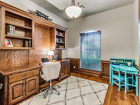 THE GOOD LIFE-in highly sought after Twin Bridges addition in Edmond. Nestled on cul-de-sac lot. Gorgeous hardwood floors, arched doorways, granite counters, and designer fixtures create a luxurious space to host family and friends. Well thought out floor plan with 3 beds, 2 & half bath, and private study adjacent from foyer. Stunning stone gas fireplace sets the scene in the spacious living area. Kitchen with generously sized walk-in pantry, SS appliances, and island. Escape to the retreat of your master suite with spa style shower, whirlpool tub, EXPANSIVE walk in closet with access to the utility room for convenient ease of access. Private patio door off the master leads to backyard patio with fireplace, built-in seating, and outdoor grill. Sense of peace in the picturesque backyard. Mature trees at this private retreat. Feel the LOVE in this Edmond community. Ponds, walking trails, pool, and recreation facility with a fabulous fitness center. Tenant pays all utilities. Applicants must pass a background check and demonstrate monthly income is 2.5x the rent. Please apply through Zillow.