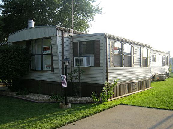 Beautiful mobile home for sale! 2 bedrooms 1 bath (with bedroom access). Laminate flooring through out with brand new carpet in bedrooms, whole home freshly painted, and best location in the area! Lots of updates within the last year such as brand new light fixtures, electrical switches and outlets, interior and exterior door handles/locks, WATER HEATER, and 2 inch room darkening faux wood blinds. Spacious master bedroom with his and her closets, bay window, and bathroom entry. Nice size bathroom complete with LOTS of closet and storage space & tub/shower combo. Open concept kitchen and living room! Cute kitchen with updated cabinets and new hardware, peninsula counter, and refrigerator, stove, and microwave stay. Living room is GINORMOUS with newly put in LED recess lighting, wood burning fireplace, and bay window. Washer and dryer has own area and is included with full asking price. New air conditioning and equipped with central heat. Internet, phone, & cable hookup. Covered deck with wooded view and land scape yard. 3 space driveway with carport. Newer vinyl siding recently power-washed August 2014. LARGE shed with electricity. Roof was alumi-coated last year. Exterior motion security lights. Perks of the park include in-ground pool, exercise room at your convenience, park for the kids, free hall for rented parties, and basketball court. Pets are allowed!!! Located Camelot Manor in Portage. Quick access to major roads, free ways, and shopping centers. Currently smoke & pet free. Motivated seller asking $8,900