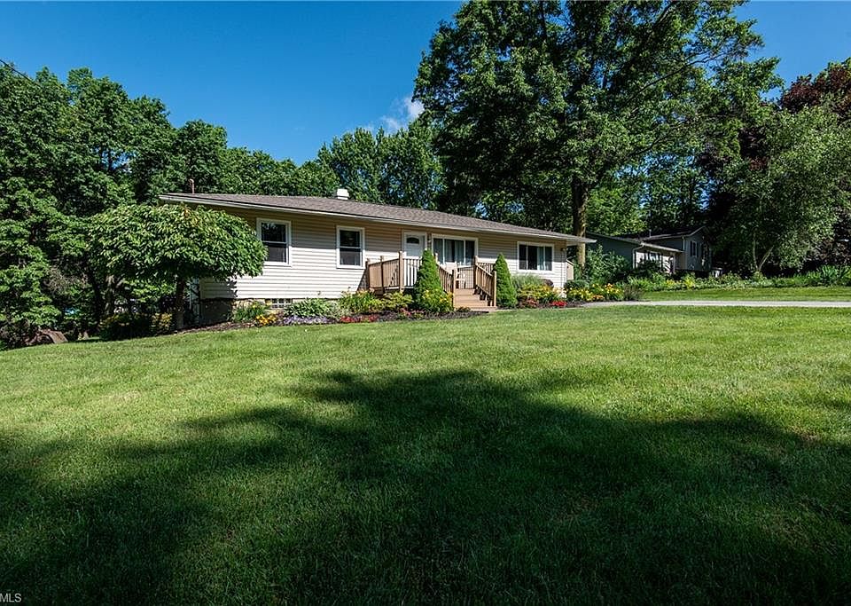 CONVENIENTLY LOCATED 3 BEDROOM 1 BATH RANCH IN GREEN ON ALMOST HALF AN ACRE OF LAND! Walk through the front entrance into the spacious living room with neutral decor, carpet, and a newer bay window that brings in lots of natural light. In the nicely updated kitchen, you will find newer linoleum flooring, Formica counters, plenty of oak cabinets, a breakfast bar, and appliances that stay. The dining room is open to the kitchen and features laminate flooring, two closets for additional storage, and a large window overlooking the deck. Located off of the dining room is a nice family room with the same laminate flooring and another large bay window that fills the room with natural light. This home also features 3 bedrooms with carpet and ceiling fans in each bedroom plus a full bathroom that was remodeled 4 years ago with newer tile flooring, single vanity and a tub/shower combo. The 11-course basement features a semi-finished area, access to the backyard, and you could add another bathroom in the lower level. The washer, dryer, and refrigerator in the basement all stay with the home as well. You will absolutely love the deck that leads down to the cement patio with a fire pit, a perfect place for entertaining family and friends! This great home is conveniently located near restaurants and highways and minutes away from the airport! Schedule your private showing today to see what this home has to offer!