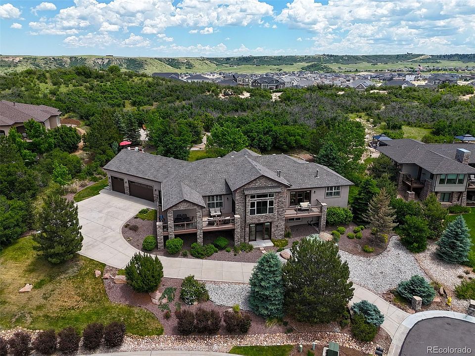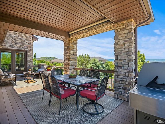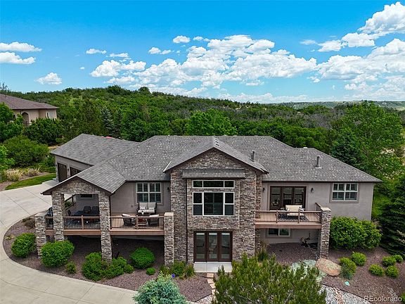 www.CineflyFilms.com/Gentry UNMATCHED VISTAS - Gaze out at majestic Pikes Peak and Mount Blue Sky from this custom-built ranch home in Painters Ridge. Expansive decks create an open-air living area perfect for soaking in the scenery. SOPHISTICATION AND COMFORT - Unwind in the 5,000+ sq ft open-concept interior. The gourmet kitchen boasts high-end appliances and a breakfast area filled with natural light. GRAND MASTER SUITE - Relax by the two-sided fireplace in the main floor suite. The spa-inspired bath and oversized walk-in closet provide a luxurious retreat. ENTERTAINMENT PARADISE - The walkout basement offers a recreation room, wet bar, theater room, pool room, exercise room, and additional bedrooms, perfect for family fun or guest stays. LUXURY DEFINED - Soaring ceilings, fireplaces, upgraded lighting, and rich wood floors create an atmosphere of elegance. Four bedrooms and four bathrooms complete this luxurious estate. BEYOND THE WALLS - A 3-car garage and potential access to a new interchange offer convenience. Minutes from Castle Rock's dining and shopping, this retreat blends stunning views with world-class comfort. Own a piece of paradise and create lasting memories in a breathtaking setting. Over an acre of living with sitting areas to take in the views! Notables; dual furnaces and air conditioning units, dual hot water heaters. Privacy on one of the largest lots in Painters Ridge.