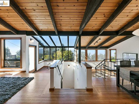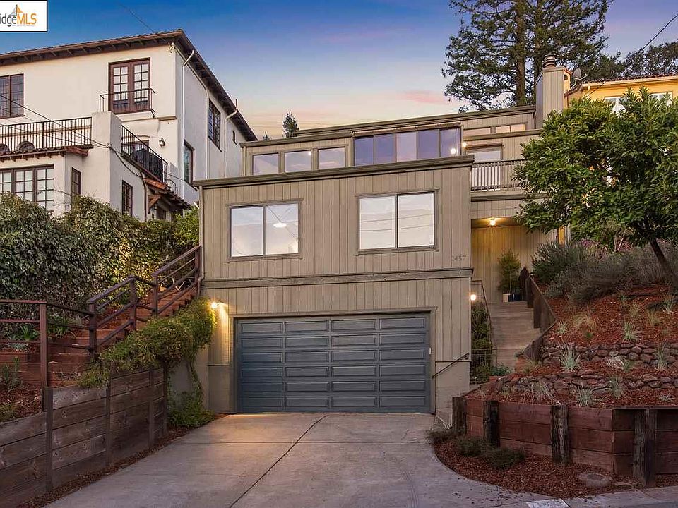 Perched in the hills below Grizzly Peak with an open concept design 1457 Olympus is a retreat just minutes from all of North Berkeley's treasured amenities. Vaulted ceilings, exposed beams and captivating design that is bathed in natural light with sublime tree line and San Francisco bay views. The main floor includes an updated kitchen with a suite of high-end stainless appliances, a dining area, living room with fireplace, a solarium, half bath and a sunken family room. The lower level has a one bedroom one bath in-law with private entrance as well as an interior connection to the main house. At the street level sits the two garage with additional off-street parking. Just minutes from Terrace View Park and a hillside path to the Lawrence Hall of Science this is truly a hillside respite with ample interior spaces and nearby places to enjoy!