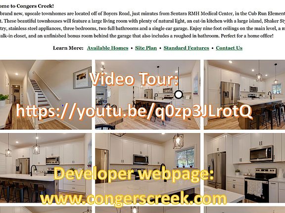 Contact to view property. This is a newly constructed (in 2023) upscale end-unit townhome located off Boyers Road, just minutes from Sentara RMH Medical Center, in the Cub Run Elementary school district. This beautiful townhouse features a large living room with plenty of natural light, an eat-in kitchen with a large island with granite countertops, Shaker Style cabinetry, stainless steel appliances, four bedrooms, three full and one half bathrooms, and a single car garage. All flooring is luxury laminate. Enjoy nine-foot ceilings on the main level that includes the kitchen, dining area, a half bathroom and the living room, with a large balcony off the dining room. Find three bedrooms in the upper level, with a primary suite with walk-in closet and a full bathroom, an additional full bathroom, and a full-size washer and dryer. The entry level has a bonus room that was finished in 2024 with windows accessible from the main entrance as well as through a backyard door and also includes a full bathroom - this is your 4th bedroom, your guest room or home office! Community amenities include a pavilion with picnic tables, a grilling area and basketball hoop and a large playground just across the street. Video of the house is in YouTube. Search for: 1457Palomino Note that the video is old and the entrance level room is currently fully finished as of 2024, see the pictures. Pictures included in this listing are for the actual townhome. To see pictures for a furnished model home go to the website for Congers Creek (search google for Congers Creek Harrisonburg) and click on photo overview. Contact to arrange a viewing. All utilities are paid by tenant, home owner is responsible for HOA fees. No smoking is allowed in the unit. Cats and trained dogs (maximum 2) are allowed for a pet deposit of $800 and pet rent of $75 a month. For puppies under 18 months, an additional $400 deposit will be collected. This unit is bound to rules determined by the Home Owners Association (HOA). Prior to viewing the property without a zillow application please send an e-mail or text with basic information about number of people and pets, pet size, reason for moving, occupation and total income, and contact information for employment and prior rent. FOR FORMAL CONSIDERATION, A ZILLOW APPLICATION WILL BE REQUIRED FOR EACH OCCUPANT AGED 18 AND ABOVE, WITH PROOF OF INCOME FOR EACH. ALL REFERENCES WILL BE CHECKED AS STANDARD PROCEDURE.