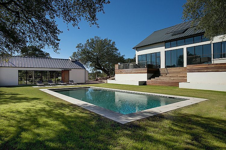 One of a kind home in Westlake on 5.1 acres of usable land including a Sangiovese Vineyard. The main home is a 4800 square foot contemporary home built around an 1840's barn that was carefully salvaged and shipped to Austin. The home features tall ceilings, an open floor plan, first floor master and three bedrooms upstairs. Additional structures built in 2016 include a gym with locker room, guesthouse with full Thermador kitchen, theater, office, and Tennis Court Pavilion next to a professionally built Tennis Court. There is also a steel construction barn on the back of the property that could be a workshop or our plans for 2017 are to convert to a wine making facility and collector car garage. The land is unrestricted so you can build anything you want. Combine the fact that it has a well, solar energy panels, and rain water collection system, and this is by far the most private home in Westlake that can "go off the grid." We have no plans to sell...but everyone has a price.
