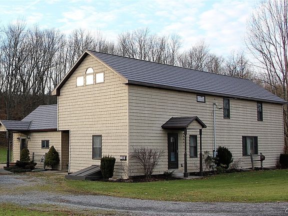 Hamilton Central School District, Town of Lebanon, Hamilton, NY mailing address and Hamilton Municipal Electric rates. Well maintained, spacious and warm country home with oodles of storage and minimal cost to maintain. Spacious living room for relaxing or entertaining. Stainless steel kitchen with newer appliances. Dining room with pellet stove and Pella slider to the back deck. 3 large bedrooms upstairs includes a master BR with attached bath with Jacuzzi tub and cathedral ceiling. Low cost Hamilton municipal electric with hot water radiant in-floor heating throughout majority of house. Approximately five minute drive from the Village of Hamilton and Colgate University. Built in 1878 with complete renovations and additions. Over-sized 2 car garage with drive-thru bay, concrete pad for camper storage behind the garage. Small gambrel barn in back with electric and hook up for a generator. This structure has extended covered storage areas on two sides. Behind the house a private brick patio with 10 x 12' soft-top gazebo and a large deck (area built to hold the weight of a hot tub, if desired). Large level backyard.