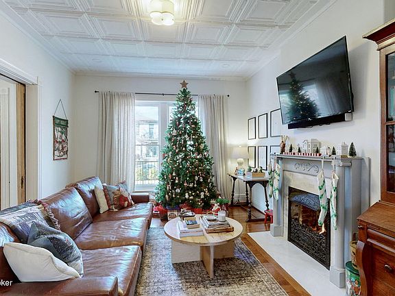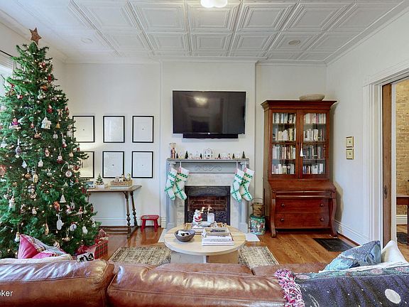 - Description: Pressed Tin Ceiling/Fireplace
