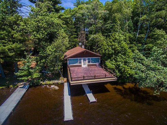 LONG LAKE HOME - The essence of Northern Wisconsin is exemplified with this truly one of a kind Cy Williams home and boathouse on Long Lake , part of the Three Lakes chain. Nestled near the end of a peninsula with 200' of sand swimming frontage on each side. Pride of ownership by the same family for 65+ years is evident throughout this home. The living room area has wonderful lake views and features hardwood plank flooring, vaulted ceilings and wood burning fireplace. The bedrooms are spacious with waterfront views and baths have been remodeled providing you with the conveniences of today while enjoying the feel this home exudes of days gone by. Without a doubt the boathouse at water's edge is beyond compare. Living quarters feature living room area, partitioned sleeping area and bath. Enjoy spectacular sunrises or sunsets from the boathouse's incredible open deck. This property is a must see for even the most discriminating buyer. Additional lake lot available