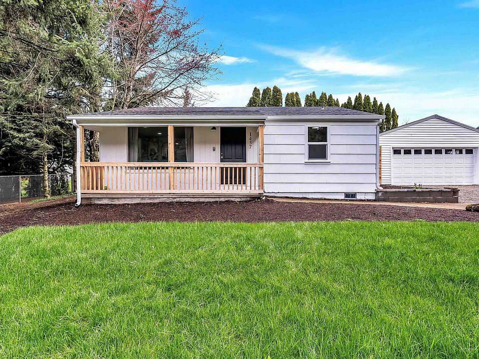 Freshly remodeled! New roof, windows, int/exterior paint, doors, trim, hardware, ductless AC/heat, plumbing, electrical, you will not want to miss out on this amazing home. Brand new flooring, updated bathroom, and complimentary lighting throughout. Brand new kitchen featuring SS appliances, fresh quartz countertops, and shaker cabinets. Large lot with a serene backyard, detached garage with ample space for potential shop, and room for RV parking. Seller bought very recently and had a change of plans.