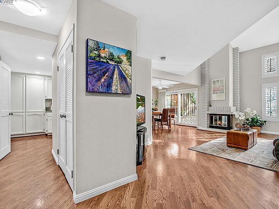 Beautiful and Desirable home in Danbury Park Freshly painted, updated kitchen , white cabinets, corian counters, with recess lighting, SOLAR OWNED a good SAVINGS, High Vaulted ceilings, plantation shutters , Spacious Master bedroom, master bathroom solid surface counters, skylight, dual sinks and large walk in closet. There is a balcony between the 2 bedrooms. Murphy bed in one of the bedrooms , garage painted and finished off. Beautiful Mural in backyard. Excellent location and walking distance to Orloff Park, downtown, 3 Top Rated schools and shopping. low HOA is paid quarterly $288 or $96 month.